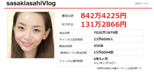 ブログチャンネルの方はここ1年更新がありませんが、年収は約131万で登録者は23.6万人となっています。(2020年5月現在)