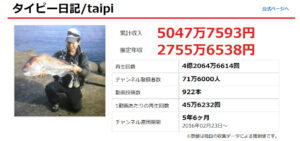 タオピーさんの収入はどのくらいなのか?チューバータウンを参考にして調べてみました↓